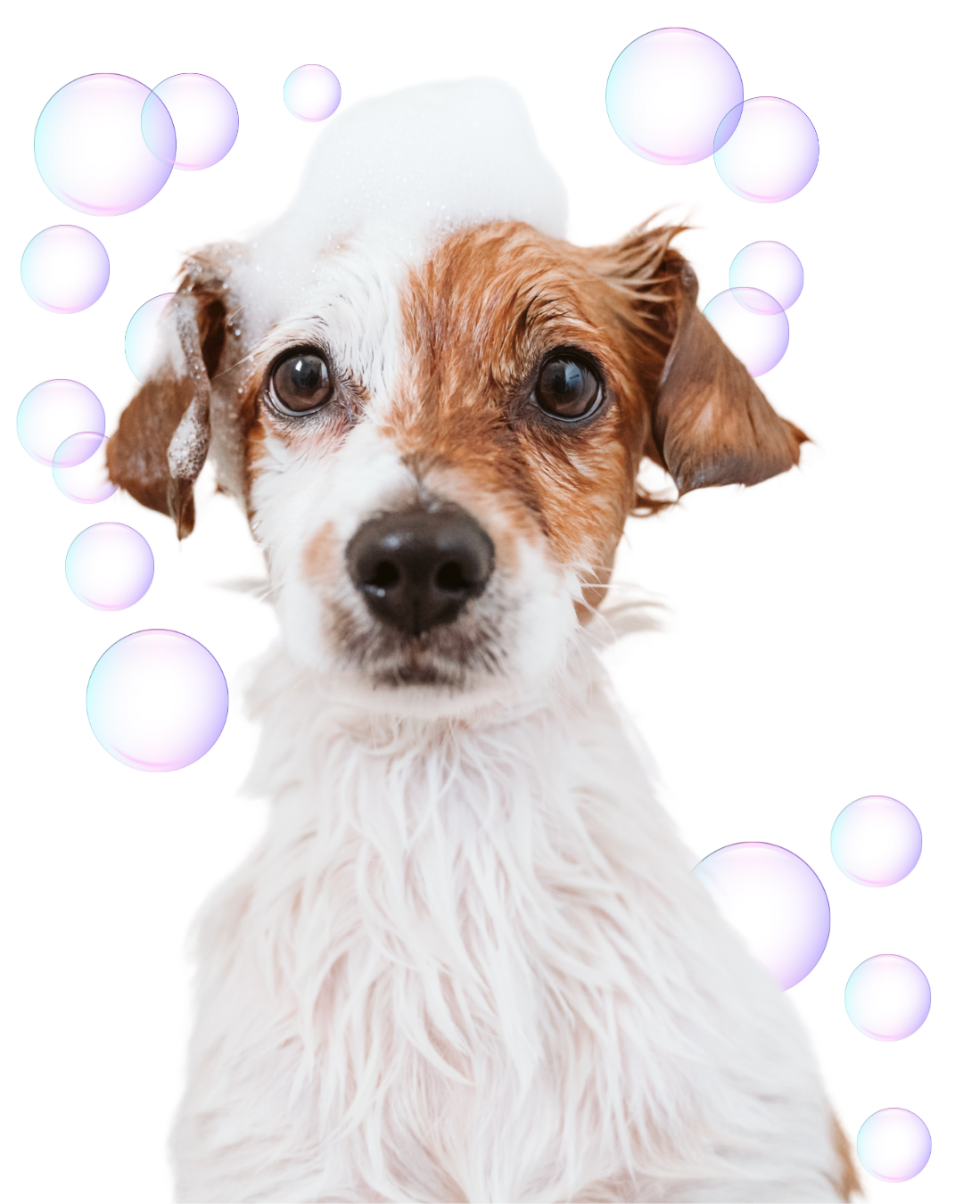 Warm Double bathing with premium shampoo and conditioning massage. Drying, brushing or deshedding, does not include mat removal. Includes clipped nails, cleaned ears, cologne, bows or bandana.